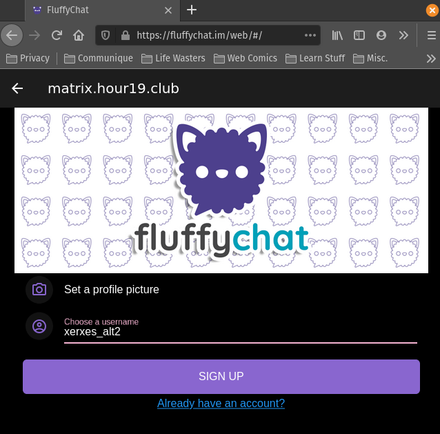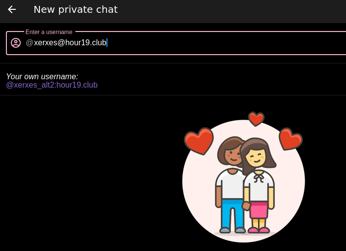 username you're interested in. Mine is "@xerxes:hour19.club" (matrix usernames